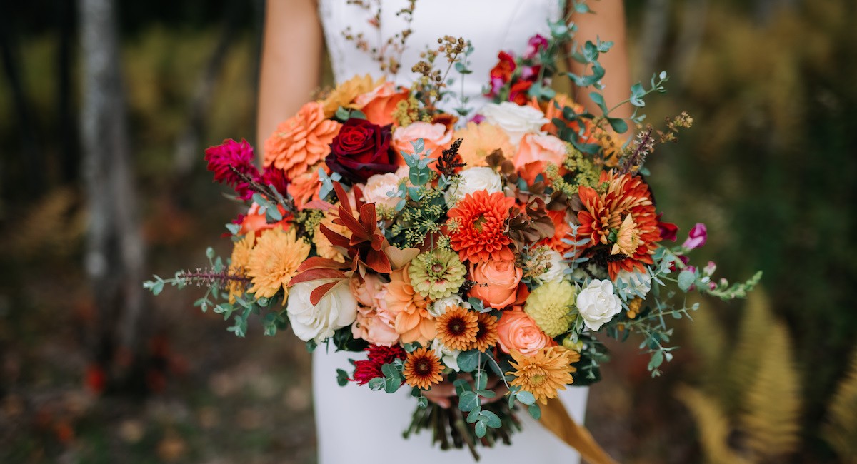 A dreamy bouquet of white roses, silver eucalyptus, and delicate baby’s breath.